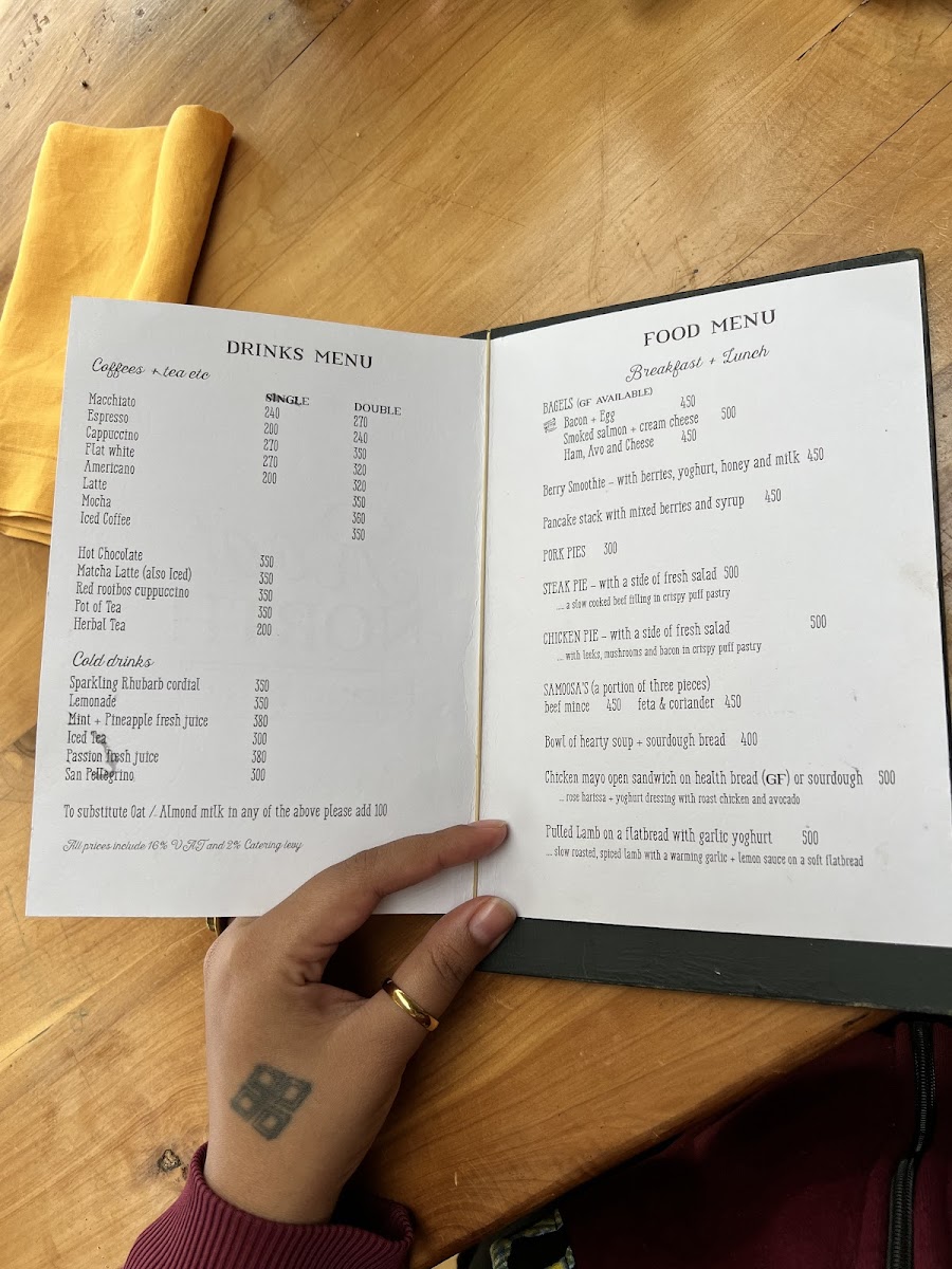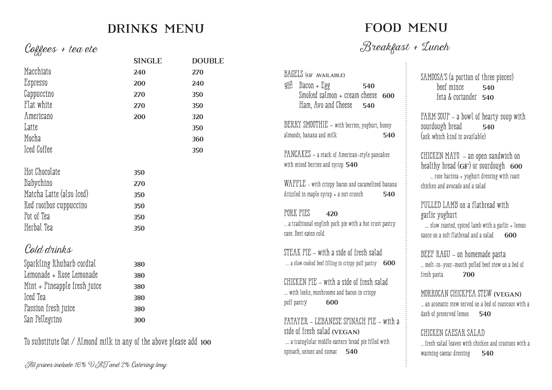 Overall, the menu caters to those seeking a combination of hot drinks, light meals, and baked goods, presented in a way that supports informal and convenient dining.