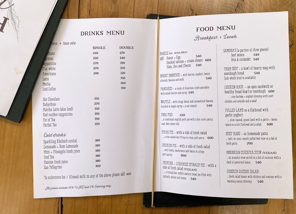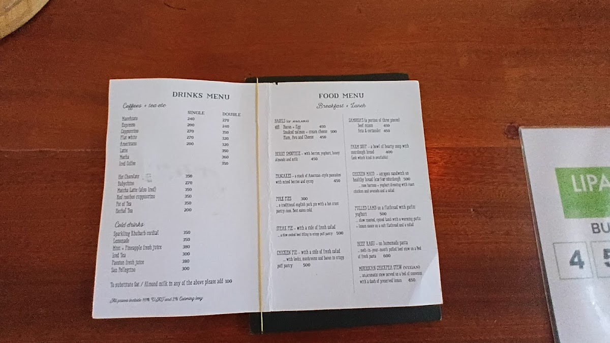 The menu is organized to accommodate casual dining experiences, allowing for quick orders of coffee or light snacks as well as more substantial meals. This structure makes it suitable for visitors looking for a coffee break, a relaxed brunch, or a light lunch. The presence of both beverages and food items ensures there are choices for different times of day and dining preferences.